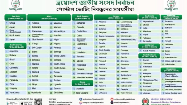 পোস্টাল ভোট বিডি’ অ্যাপ: নিবন্ধন ২৩ ডিসেম্বর পর্যন্ত